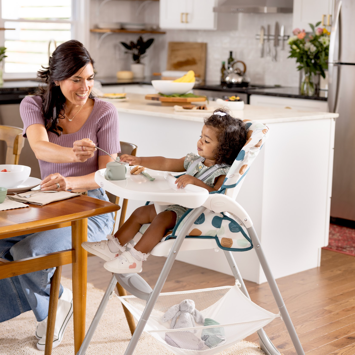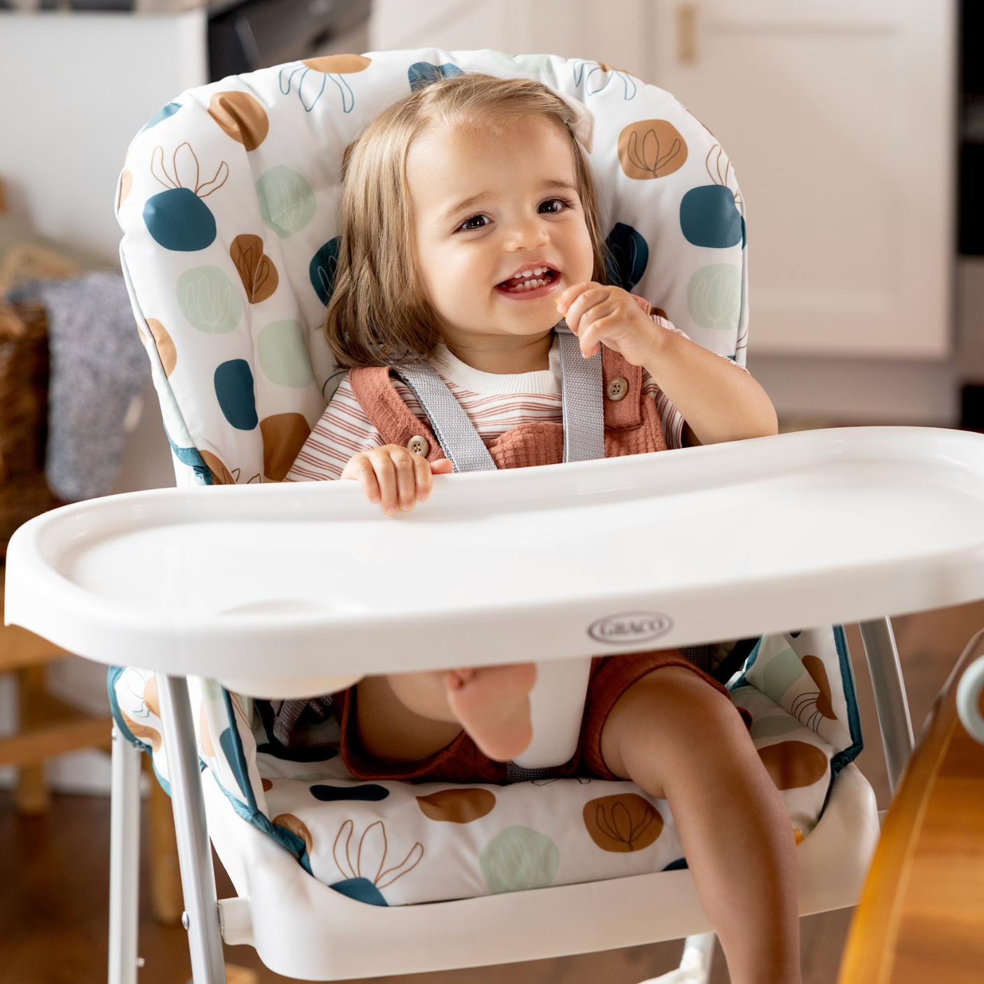 It only takes one hand and a matter of seconds to fold SnackEase, giving you more space in your kitchen or dining area space between mealtimes. This compact highchair even stays standing when folded so it’s easier than ever to store. When you’re ready to share another memory-filled meal together, it sets up just as fast.